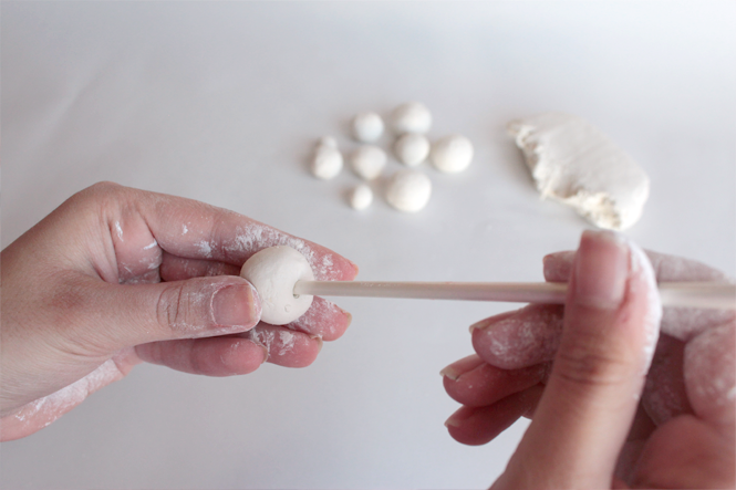6. Thread the beads onto the cord and tie a knot at the end. And it's done!