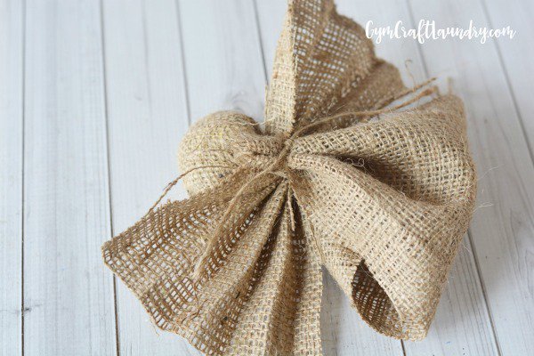 Wrap the burlap around the ball/head and hold the end tightly. Secure with the twine.