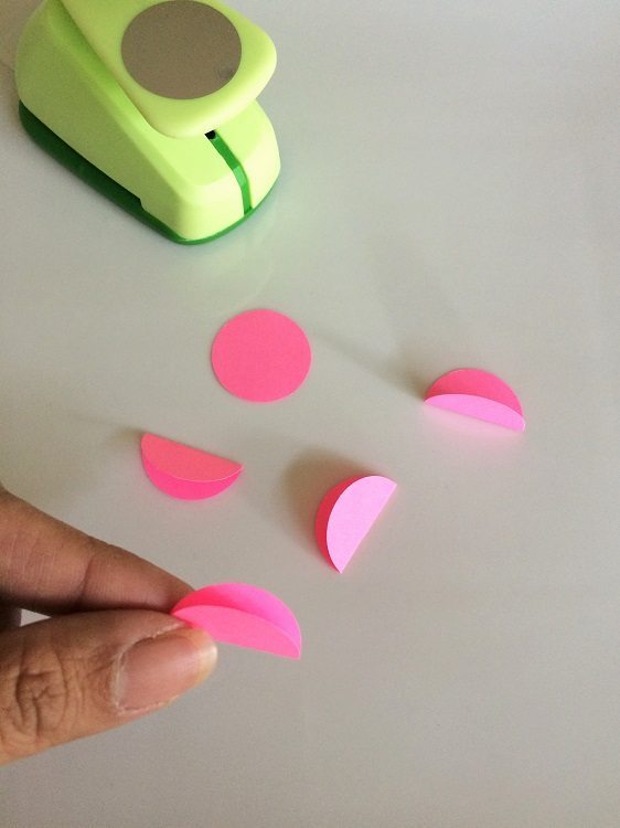Fold each circle in half. I folded all five circles at once to save time.