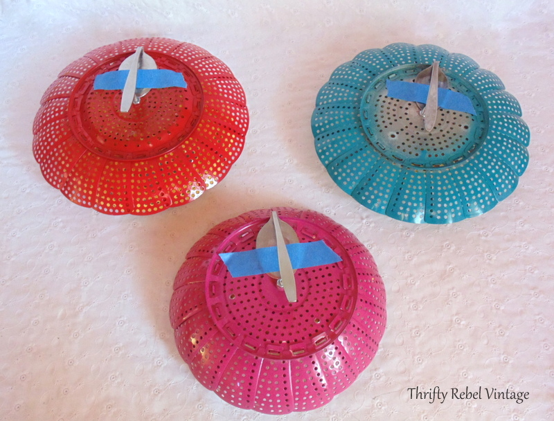 How to Spray Paint Repurposed Folding Strainer Flowers