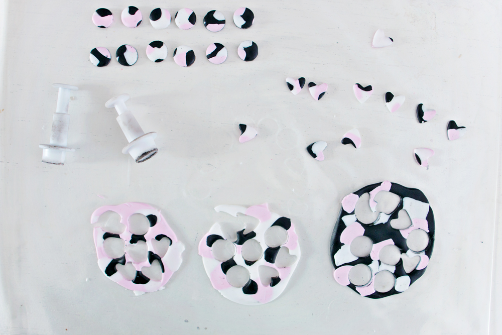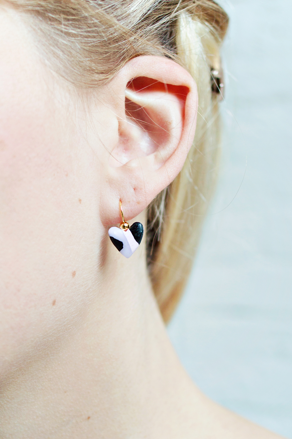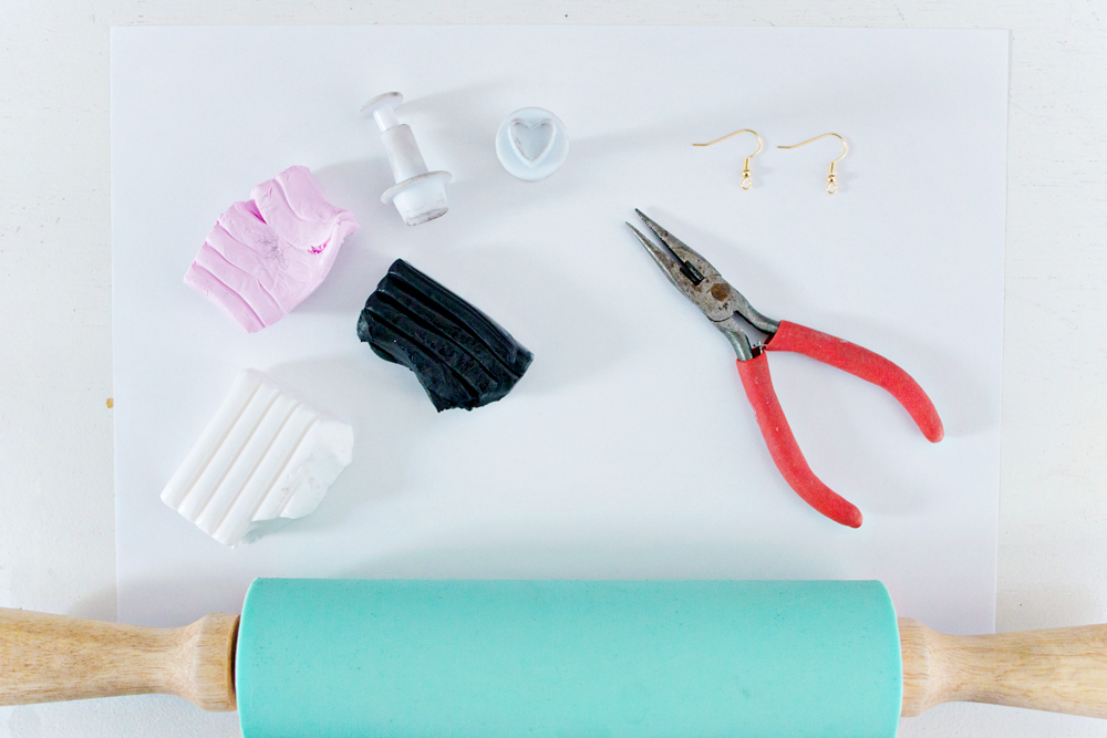 *Black polymer clay is unfortunately known for making your hands and surface black, which will also effect your other clay colours. To avoid ending up with grey all over your pretty clay earrings, clean your hands, rolling pin and surface as often as possible.
