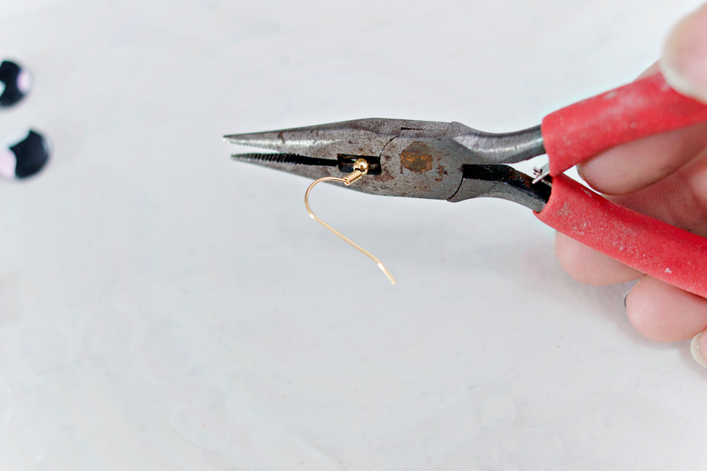 – Make sure that you still have about 1 cm left on the earring to attach the clay shape.