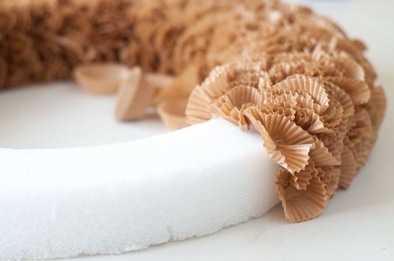 I made sure to put the cupcake liners really really close the each other. I wanted the wreath to look completely full.