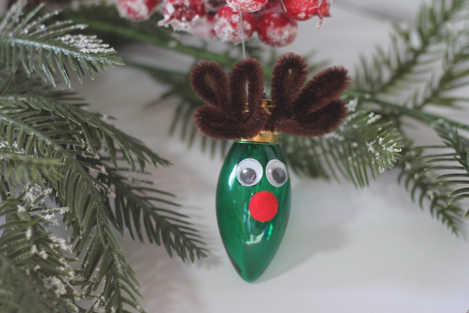 Hot glue the googly eyes, and nose. I also glued a wire hanger onto the back of the bulb base. You could also use a piece of twine or whatever you have on hand.