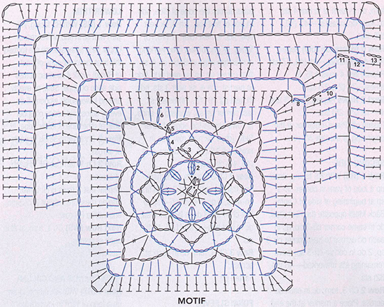 Rounds 1-5 of Center Back Motif measure about 5 1/4''/13.5cm square.