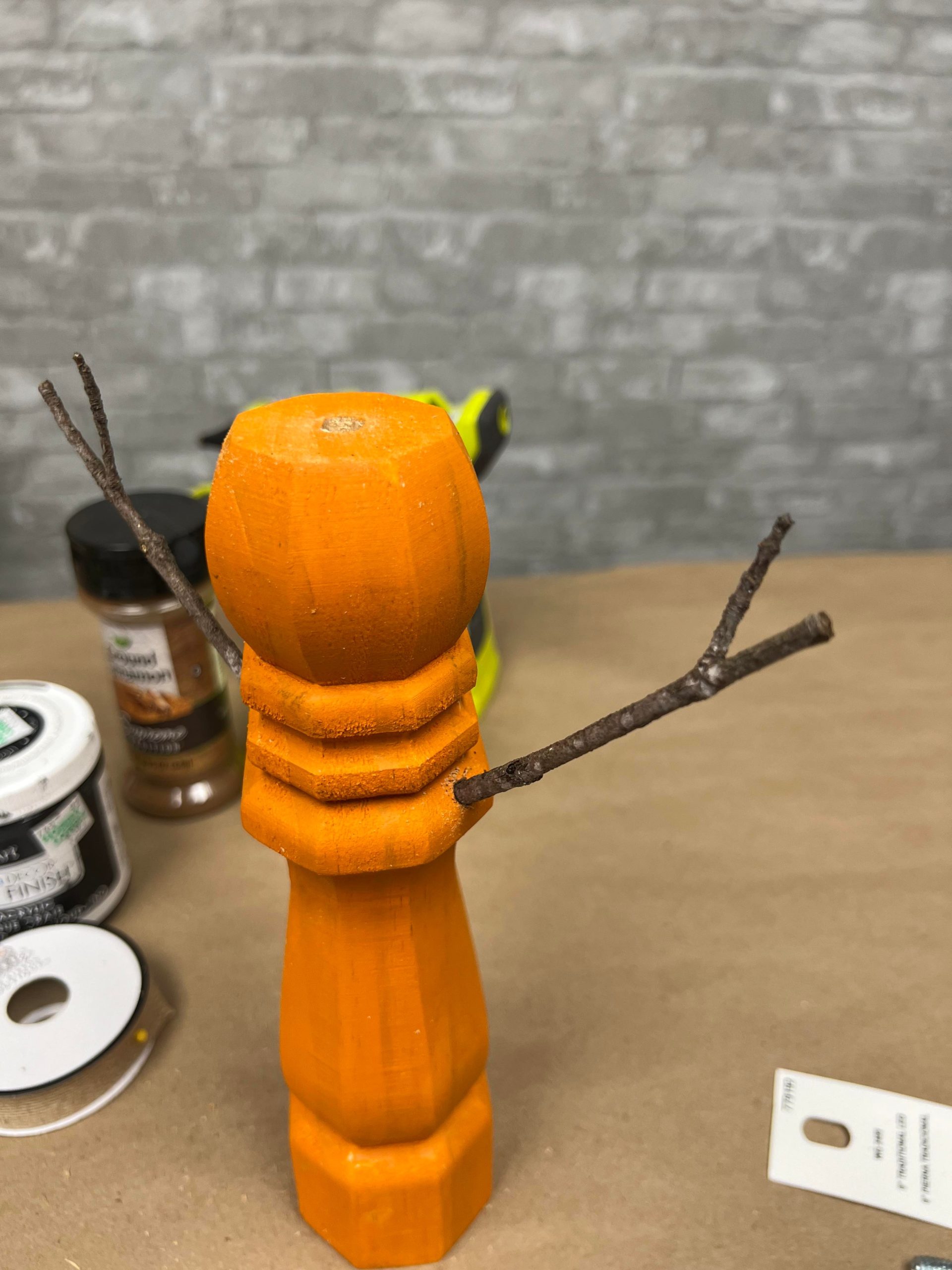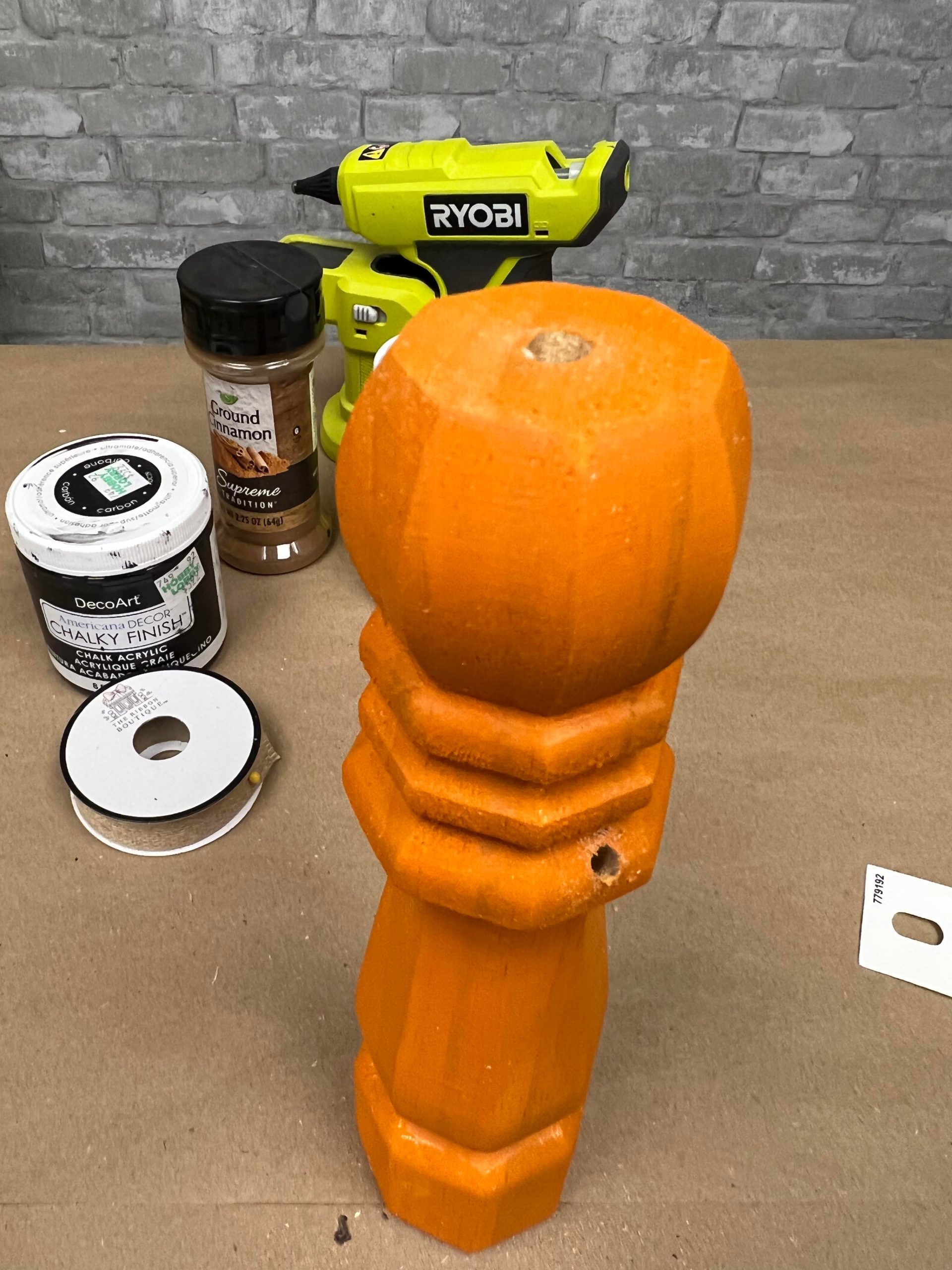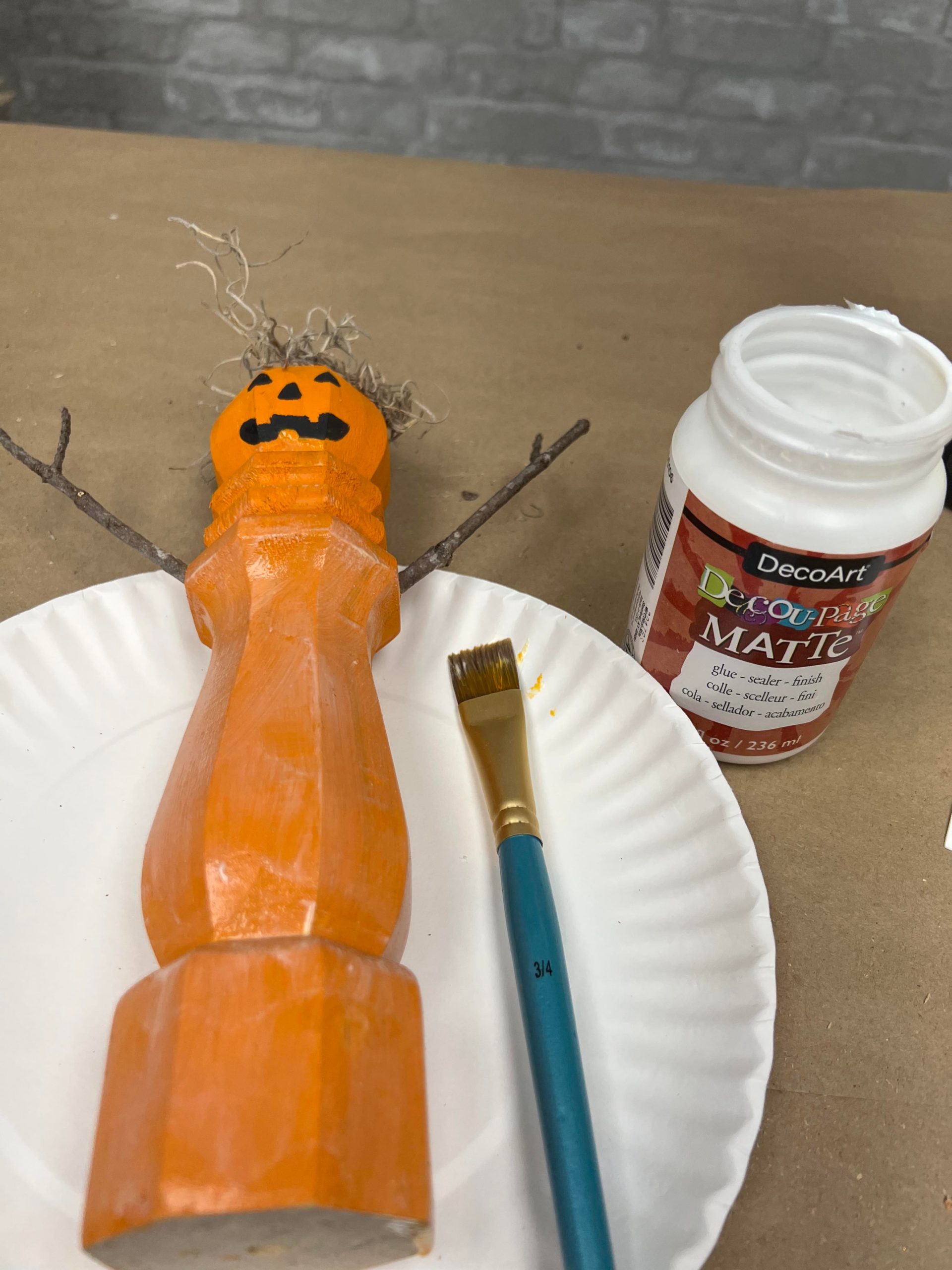 I used the black paint to make a face. Once I had the face painted on I then added the decoupage and cinnamon.