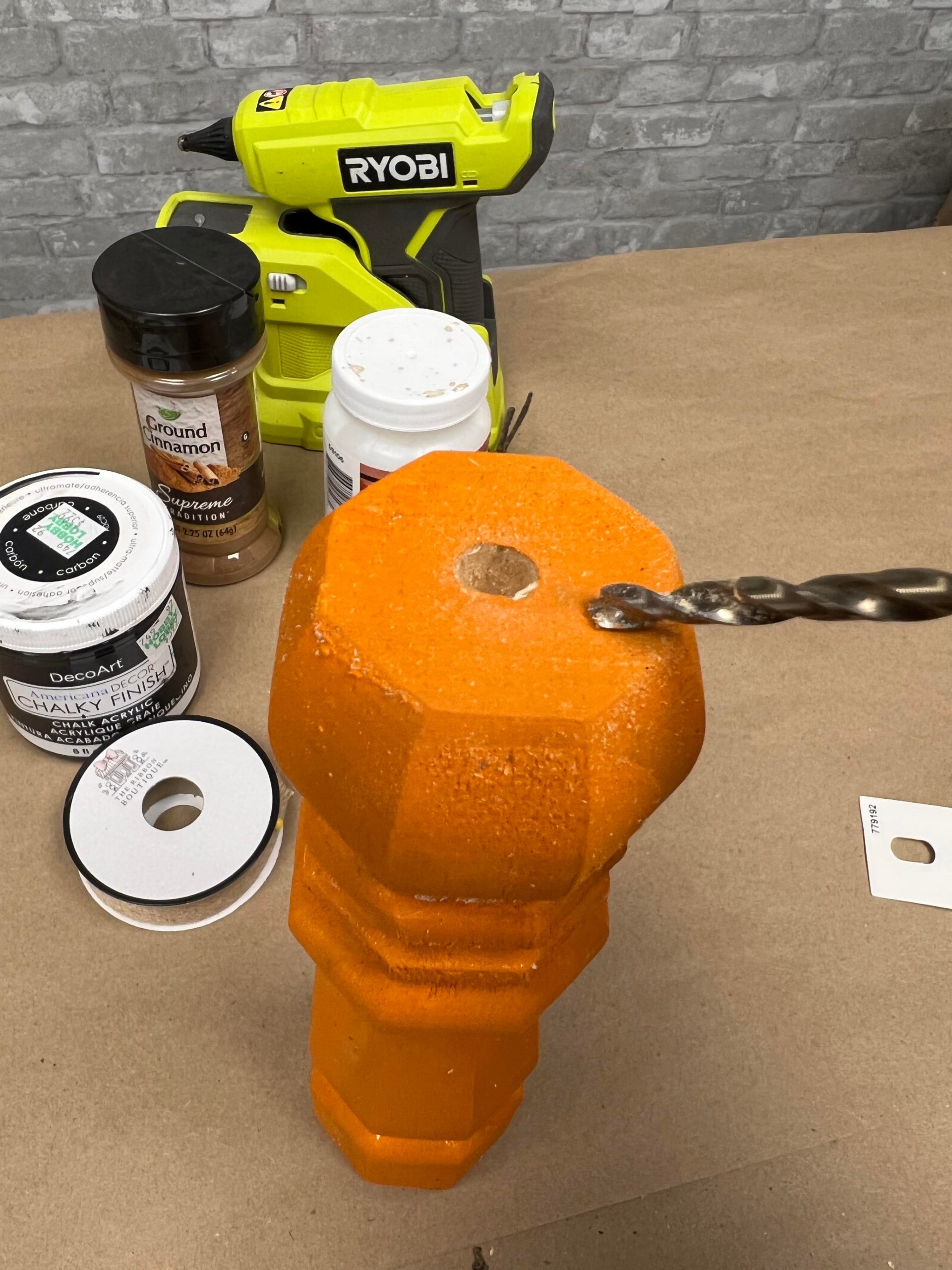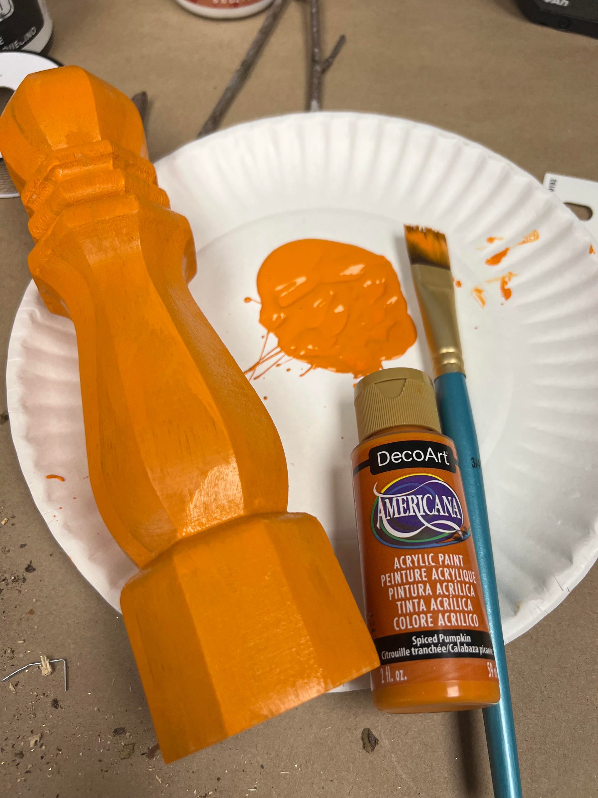 Once you have the screw removed you’ll want to paint the leg with the Spiced Pumpkin paint.
