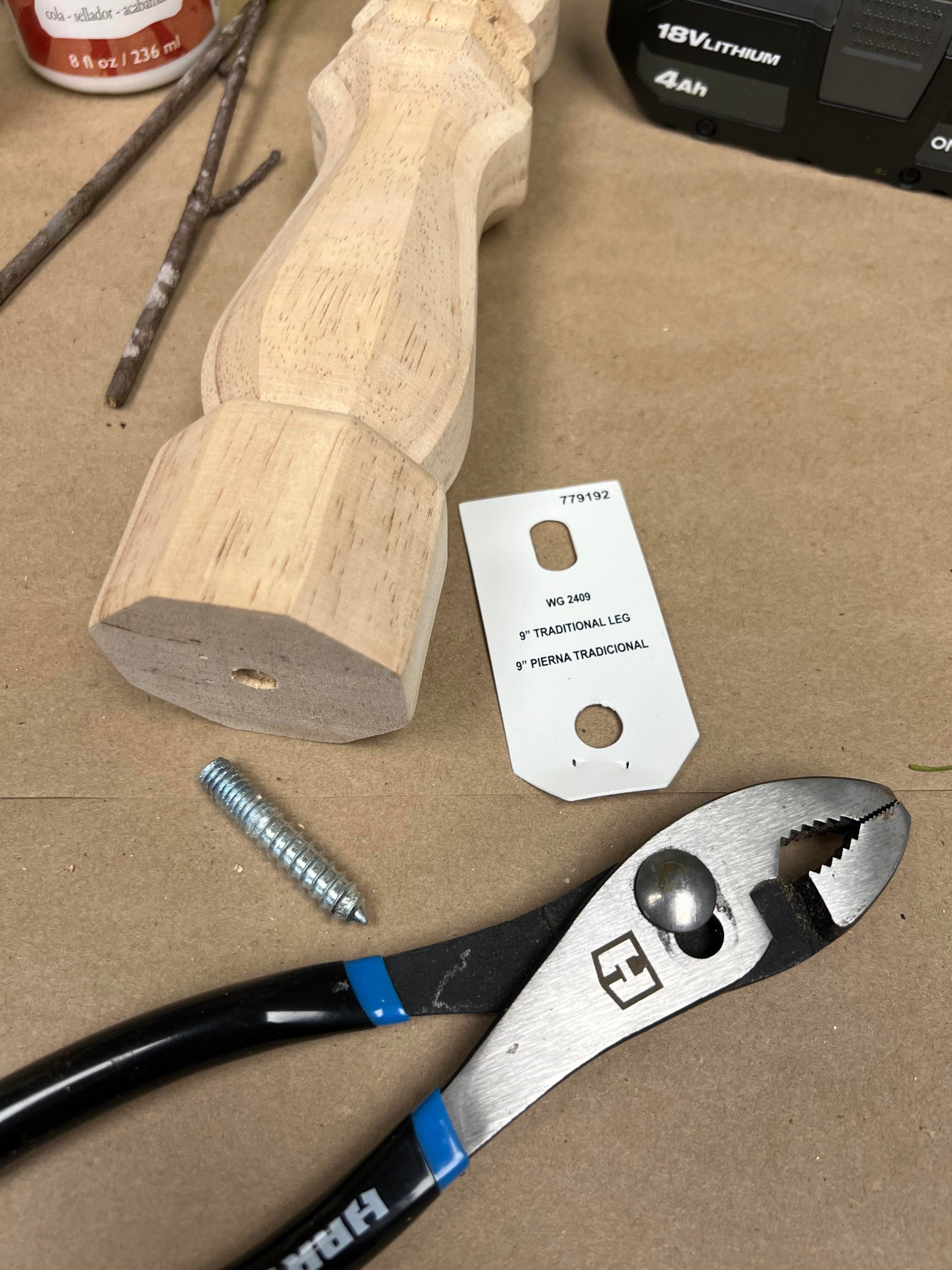 1. One 9” traditional wood leg from Home Depot