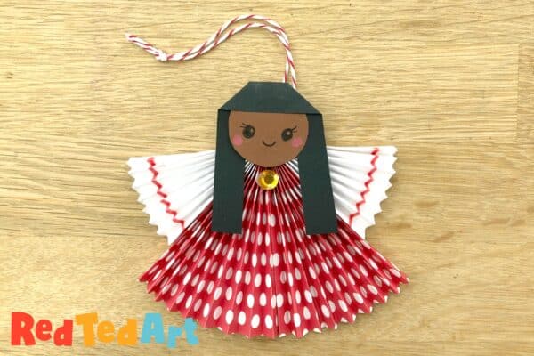 If using paper for the angel’s face, this makes a great classroom craft too – as nice and thrifty and yet oh so cute! Give the angel’s different facial expressions and maybe even make a whole choir of angels! Note: no angel templates needed!