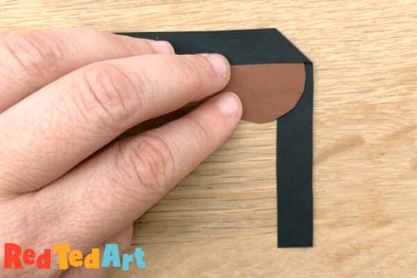 To make your face, you will need a circle in skin tone colour and a strip of paper. Glue the strip of paper to the top of the head.