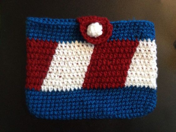Oh, the Crochet Captain America Clutch is an absolute marvel! Picture this: a vibrant mix of red, white, and blue yarn intricately woven together to create a stylish and eye-catching accessory that any hero at heart would adore. This clutch is not just a convenient way to carry your essentials; it's a statement piece that showcases your love for all things superhero. Imagine heading out with this fabulous piece by your side, feeling like a true Avenger ready to take on the day with style and flair. It's a must-have for any fan looking to add a touch of superhero charm to their outfit. So, unleash your inner hero and carry a piece of the Marvel universe wherever you go with this remarkable Crochet Captain America Clutch!