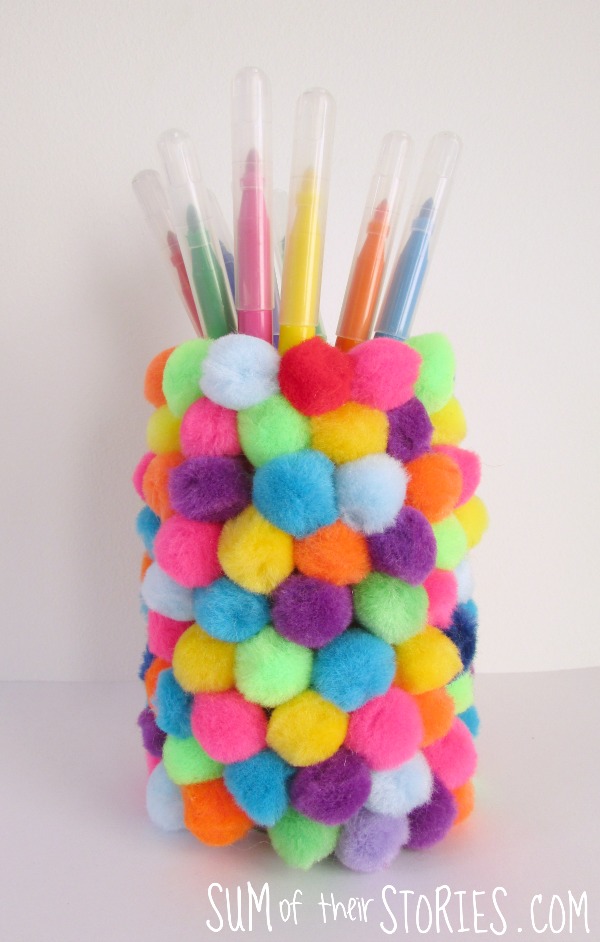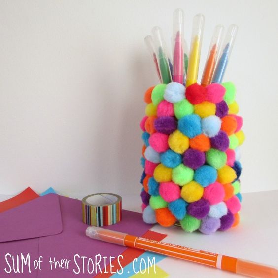 That's it. Easy peasy, lemon squeezy and you have a fabulous, colourful pom pom pen pot to brighten your day. Your desk will have never looked better!