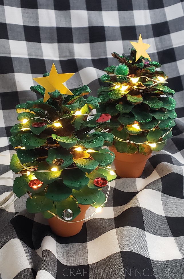 Potted Pinecone Christmas Trees are a charming and eco-friendly way to add a touch of rustic elegance to your holiday decor. These adorable trees, crafted from pinecones arranged in the shape of a Christmas tree and placed in a decorative pot, bring a festive and natural feel to any room. They are not only a delightful alternative to traditional evergreen trees but also a perfect DIY project for the holiday season. You can get creative by painting the pinecones or adding glitter for extra sparkle. Whether displayed on a mantel, table, or windowsill, these handmade trees are sure to spread joy and cheer throughout your home during the holiday season.