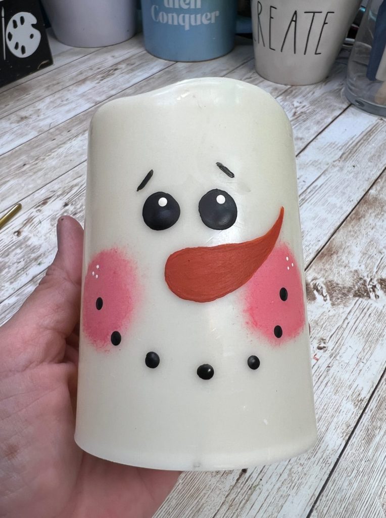 First, I used the Black Paint and painted on two circles for the snowman eyes.