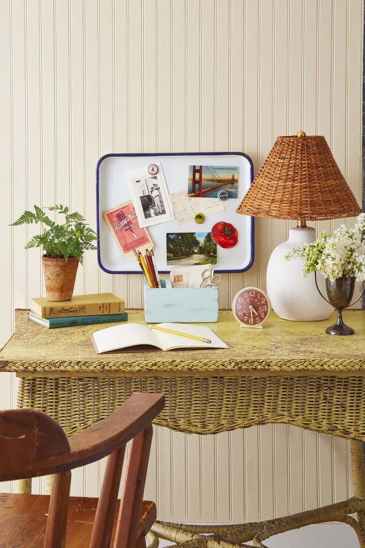 To make: Simply hang a tray on a wall using Command Strips or double-sided Velcro. Repurpose vintage bottle caps into charming magnets to hold your mementos in place. Then step back and admire your resourcefulness.