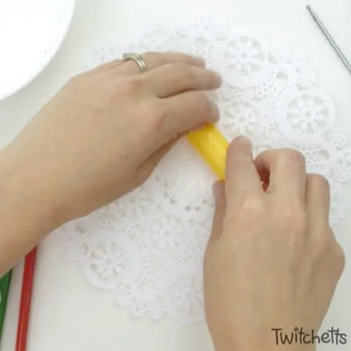 Roll it out using something to help keep it even. I used 2 colored pencils.