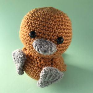 1. If you haven’t used safety eyes, embroider the eyes between rounds 12-13, with approx. 6 visible stitches between them. Sew the beak to the head, between rounds 13-15 and centred between the eyes. For the mallard option, the brown patch on the body is the belly.