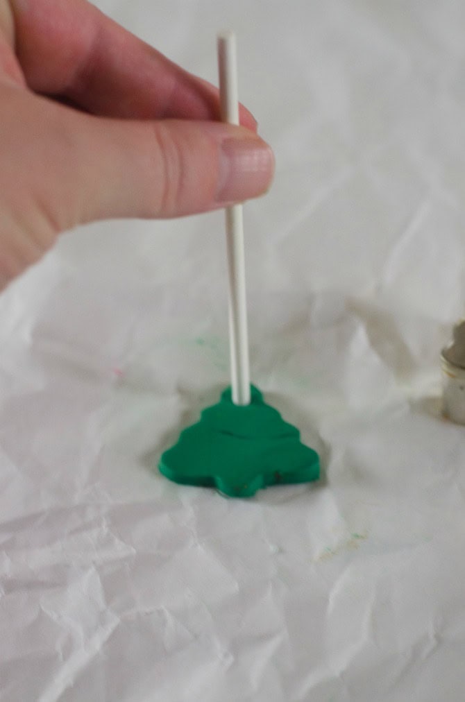 Make a hole at the top with the lollipop stick.