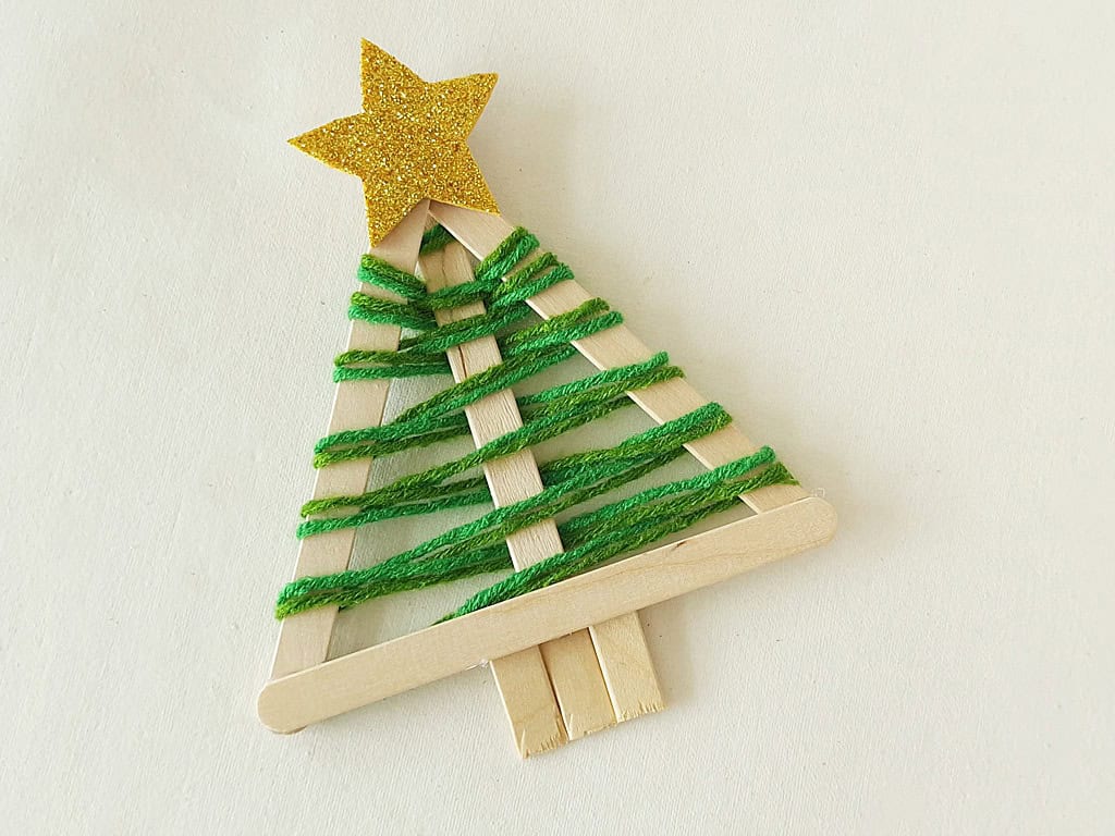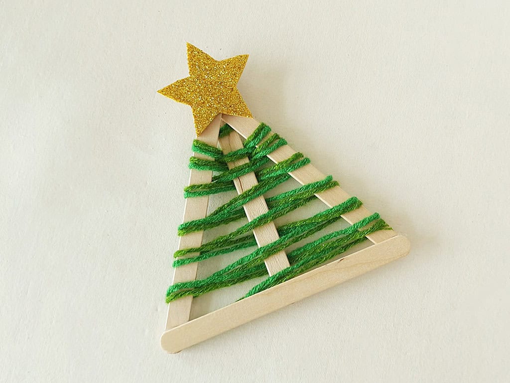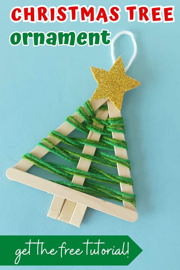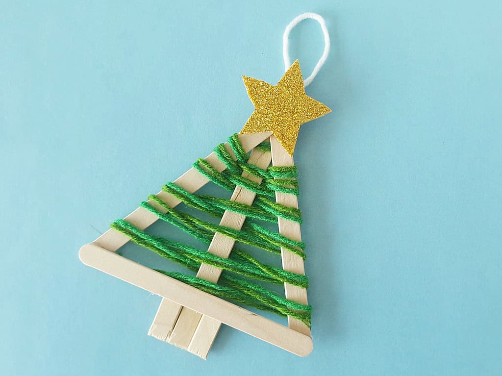Make a small loop with a string or ribbon and attach it at the top of the Christmas tree, behind the star to complete the ornament.