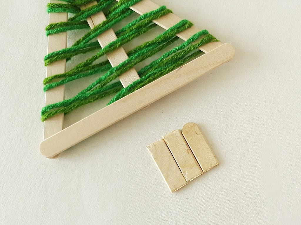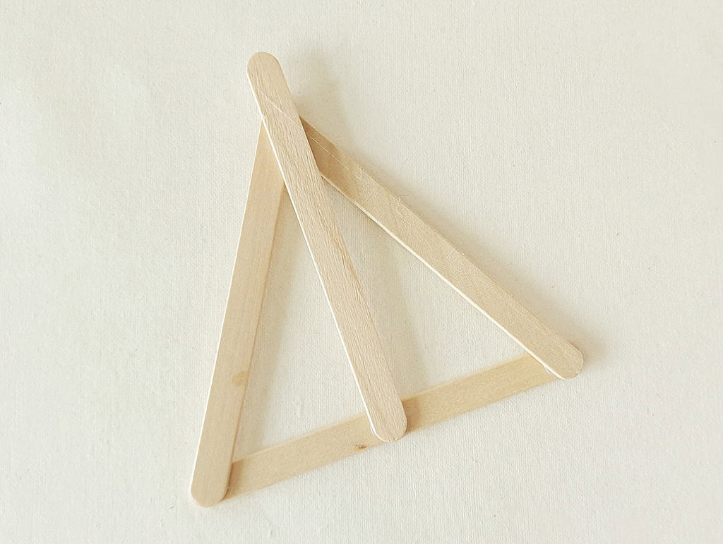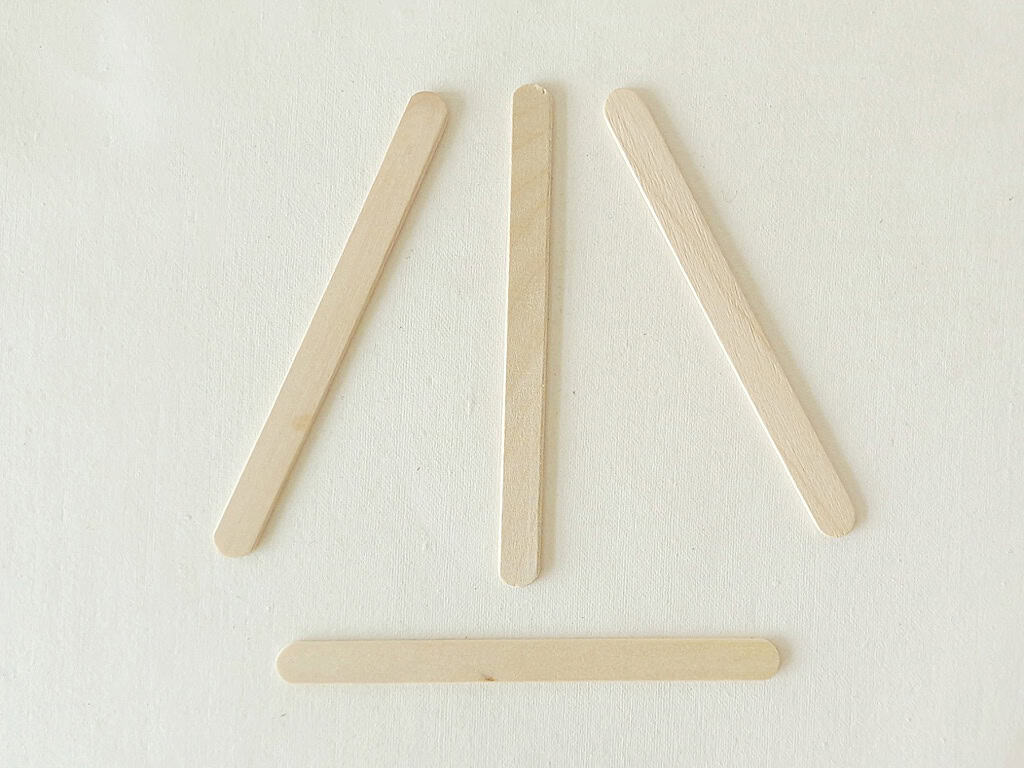 Cut 3 even pieces from a popsicle stick and place them adjacent to each other, side by side. This will be the trunk of the tree.