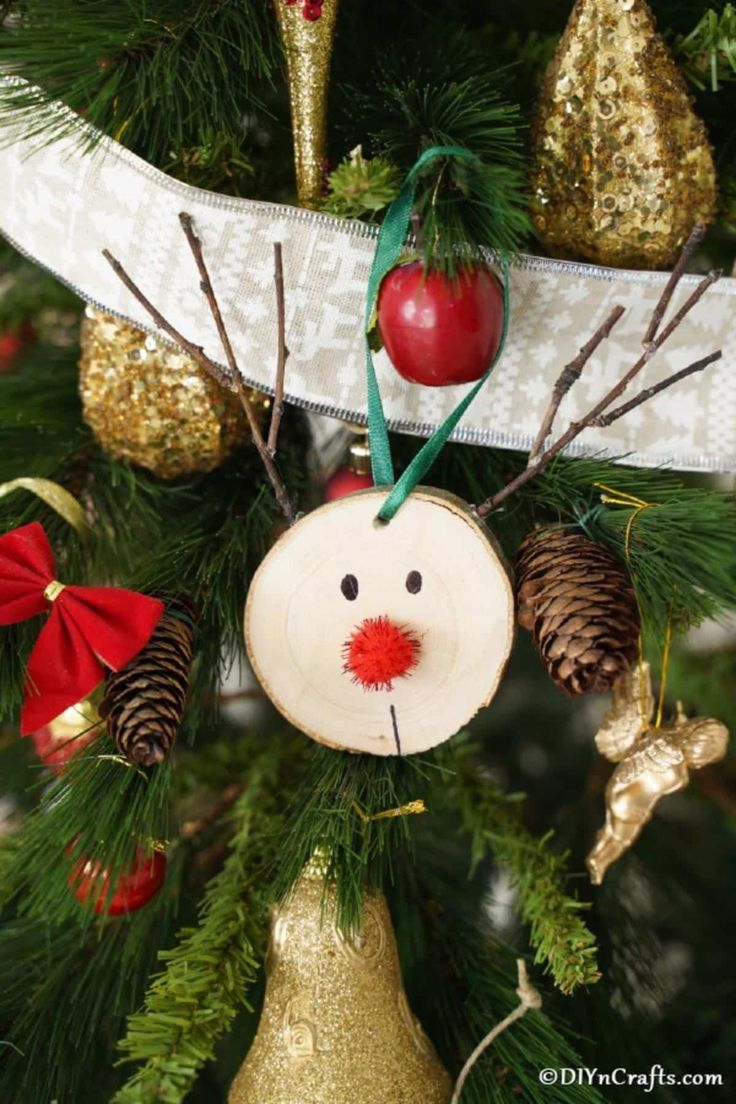 DIY Rustic Wood Slice Reindeer Christmas Ornaments