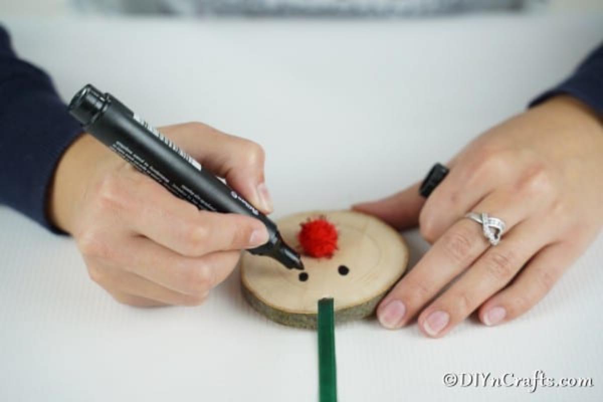 Once the hole has been cut, you will use the marker to draw on eyes and a mouth for your reindeer.