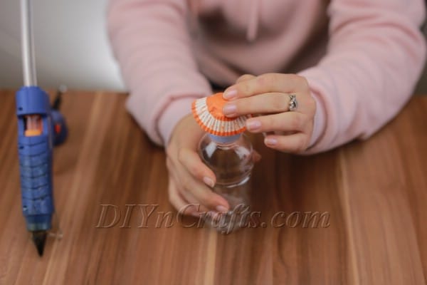 First, get the candy cup and glue it to the top of the bottle cap.