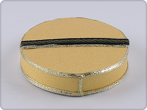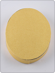 Use the lid of the box to trace the oval shape onto the wrong side of the gold craft paper. Cut out the shape. Trace the oval shape of the bottom part of the box onto the wrong side of the gold craft paper and cut out.