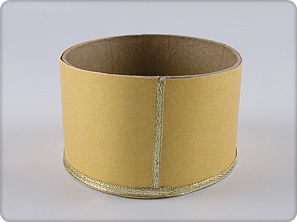 Cut a piece of the gold metallic craft paper measuring the entire length plus 1/4 inch and the exact height of the side of the oval box lid. Cut another piece of the gold metallic craft paper the entire length plus 1/4 inch and the exact height of the bottom side of the oval box.