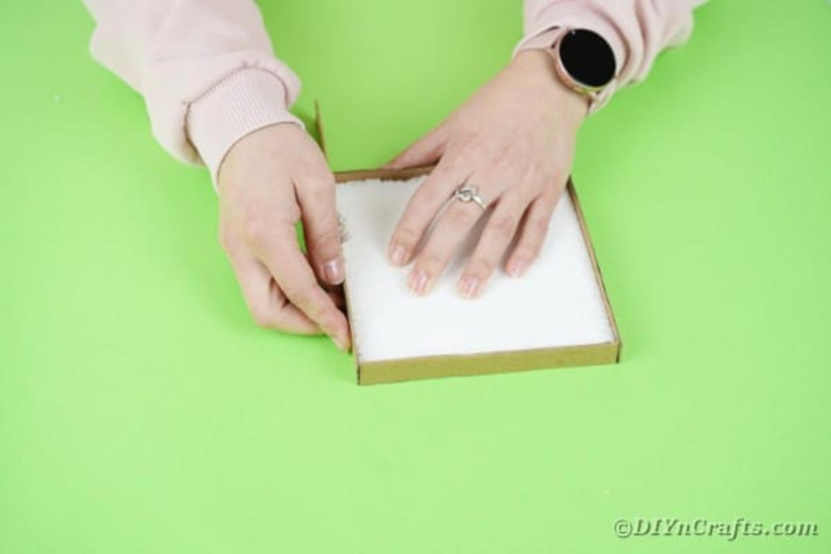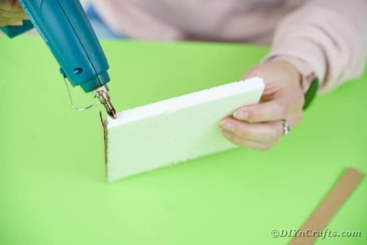 Glue the cardboard strips around the sides of one of the styrofoam pieces.