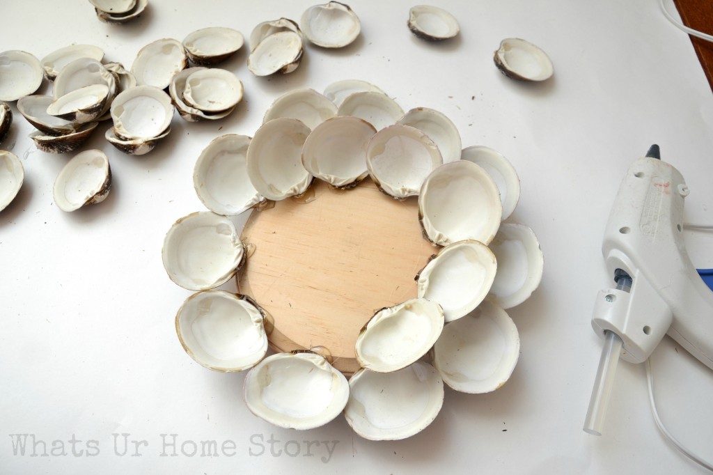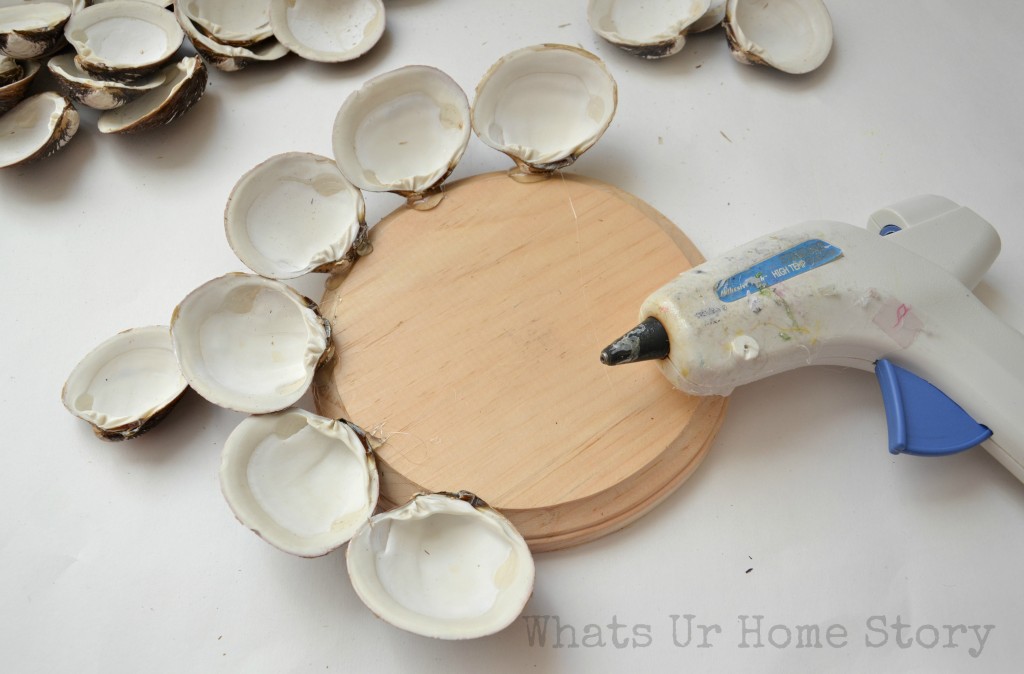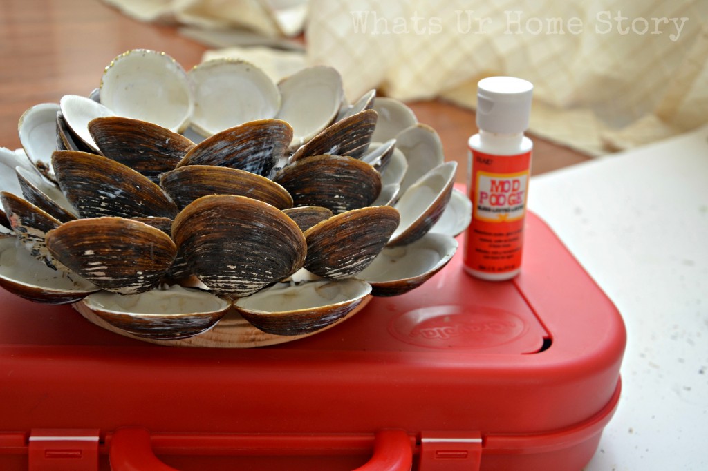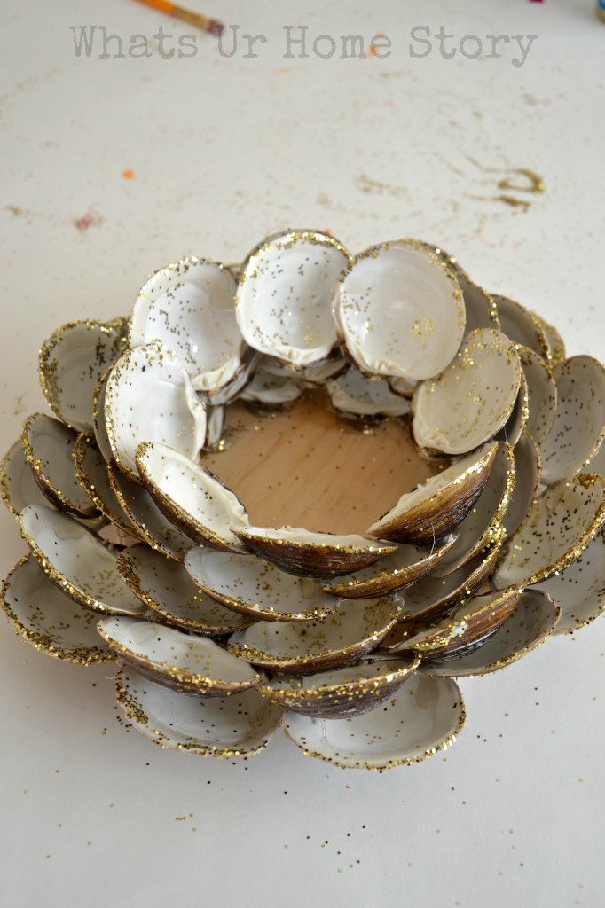 Once the Mod Podge is dry I went back with more Mod Podge just on the edges of the shells. Before the glue dries apply the glitter to the edges.
