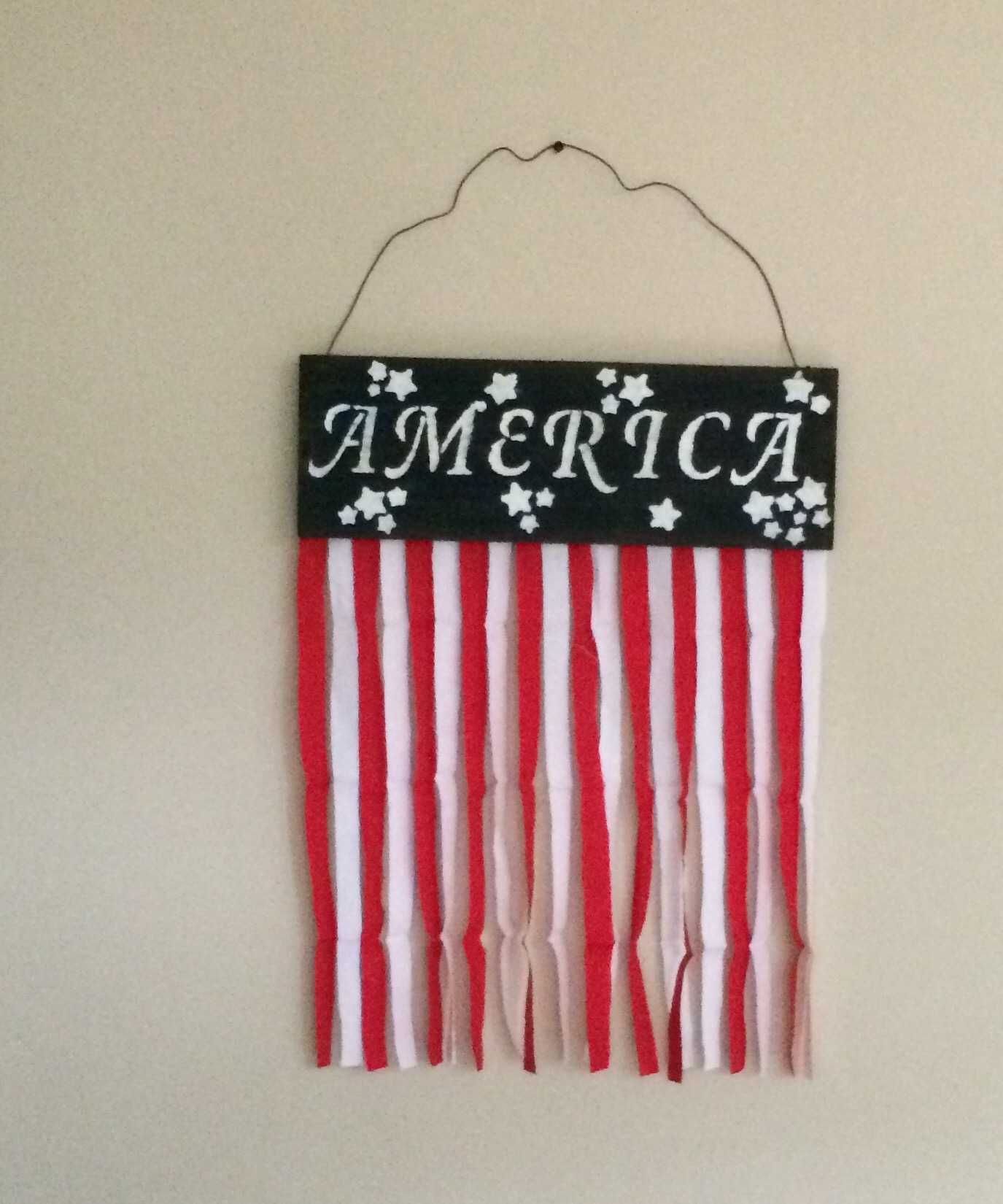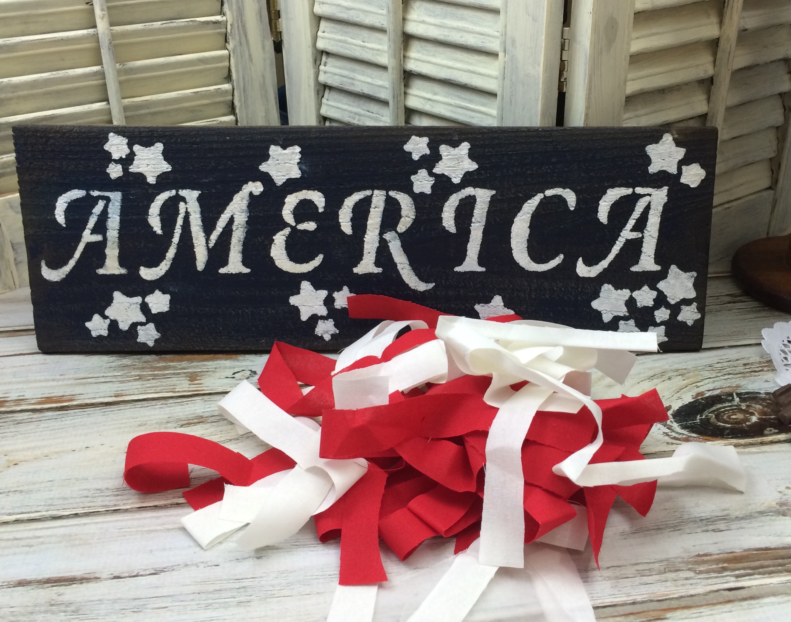 Then there was light! I then cut my fabric strips for my 4th of July fabric banner sign approximately 18″ in length and 1″ wide.