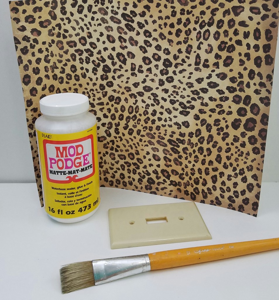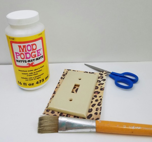 Then I brushed mod podge over the tops of each animal print switch cover to seal and protect each cover plate.