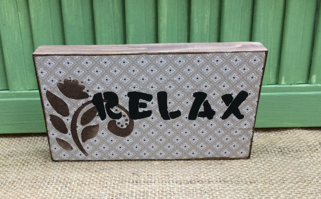 Adding some Distress stain around the edges of the block will enchants the vintage look of the relax block sign.