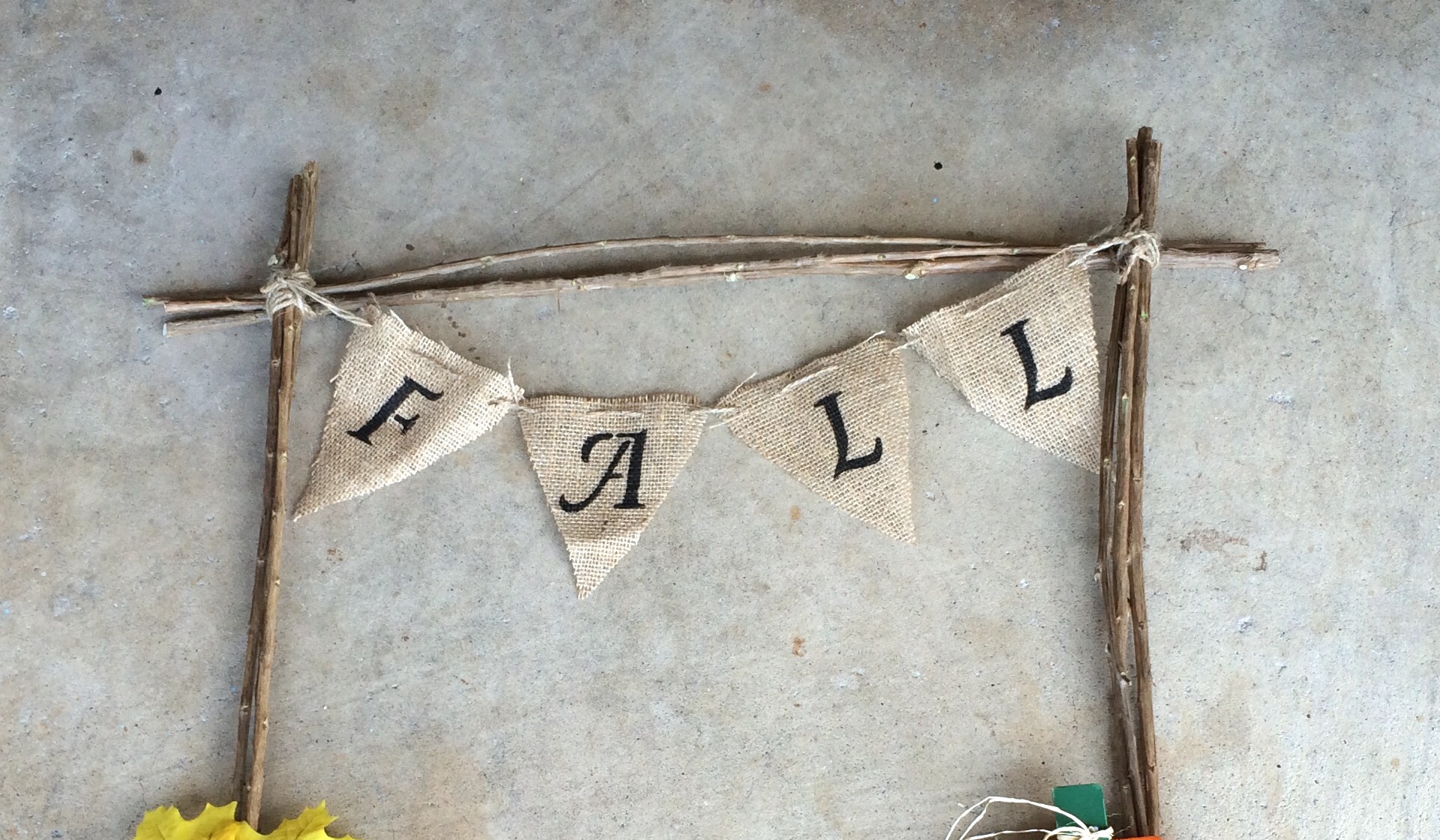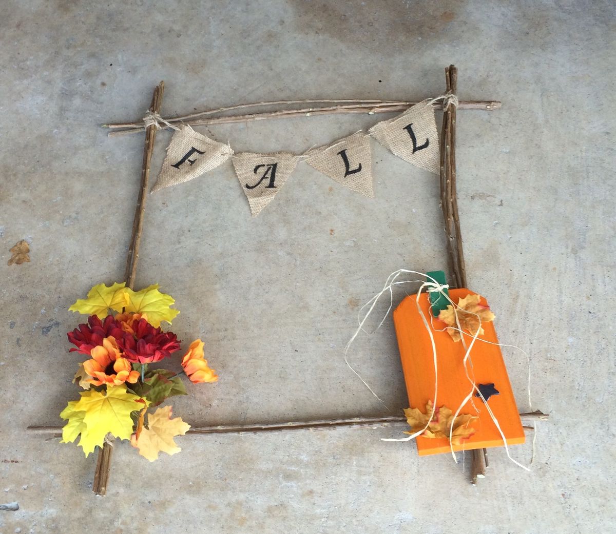 I attached the fall sprigs to the left side of my twig frame with floral wire.