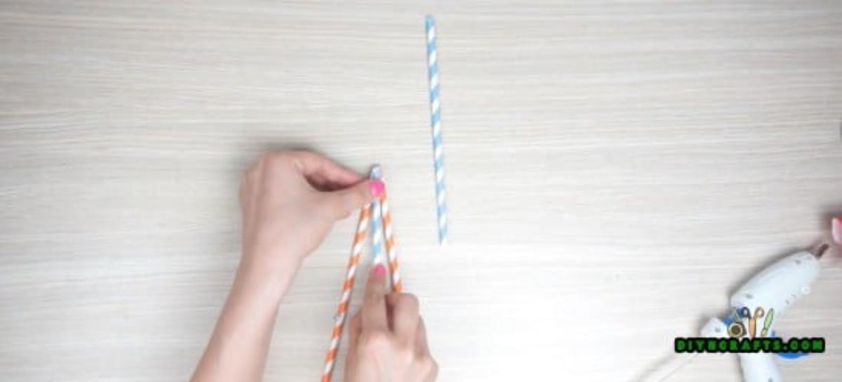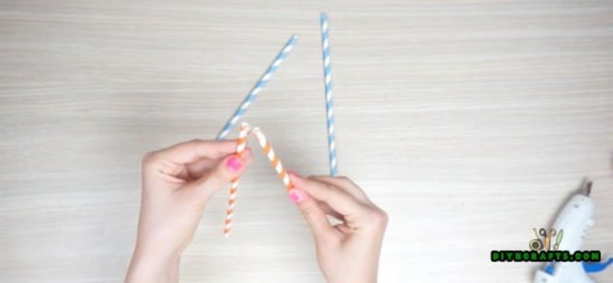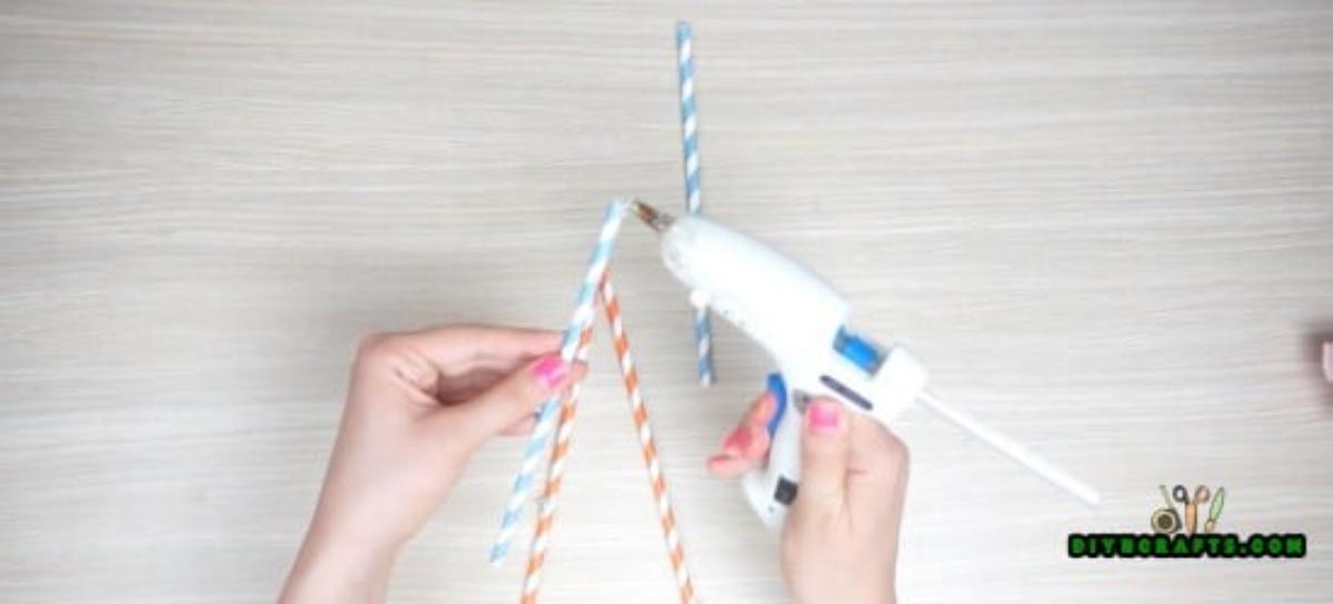 4. Glue one more straw horizontally across one face.
