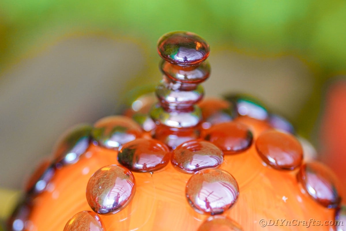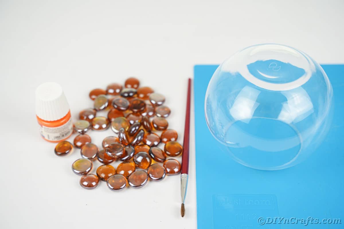 Once dry, turn it upside down so the open side is down, and begin gluing glass rocks to the top covering the flat bottom.