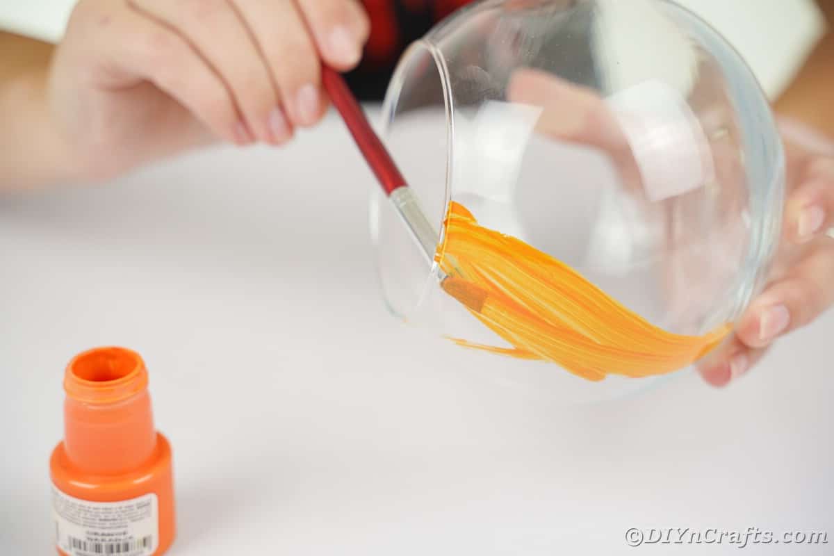 Paint the inside of a glass fishbowl or similar bowl orange using craft paint. Set aside to dry.