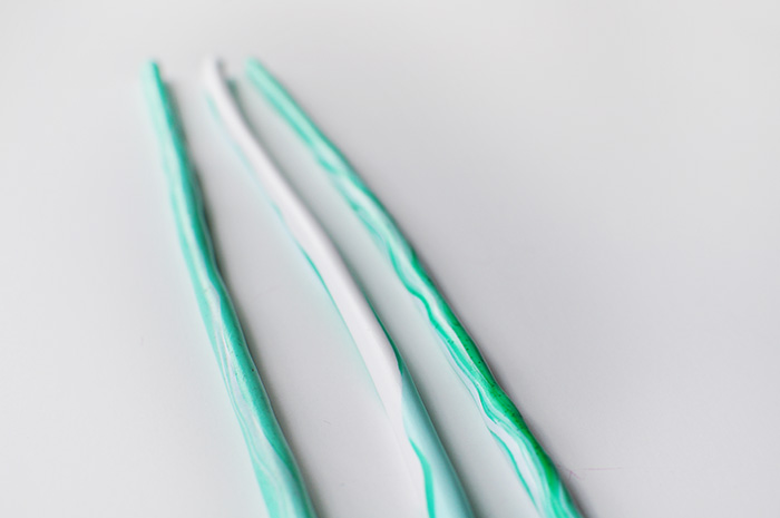 Slowly begin to roll them out with your Clay Rolling Pin until you are happy with the marbled effect. NOTE : If you roll your clay out too much, it will begin to mix and blend too much and become one color.
