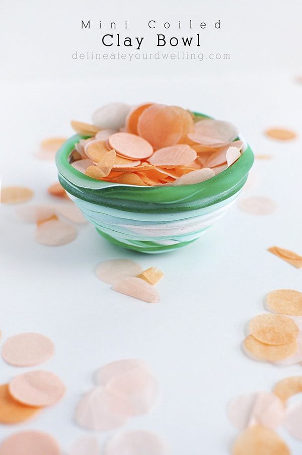 Then roll the clay into small coils with your hands. The smaller your clay bowl is going to be, the smaller your coils need to be.