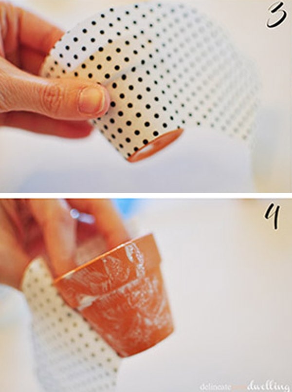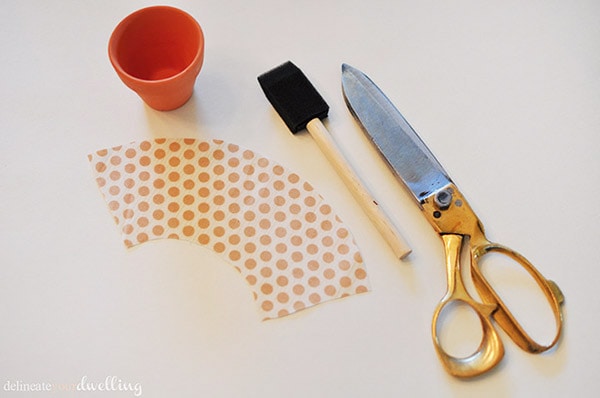 Next, use a sponge brush and apply Mod Podge to a small section of the pot.