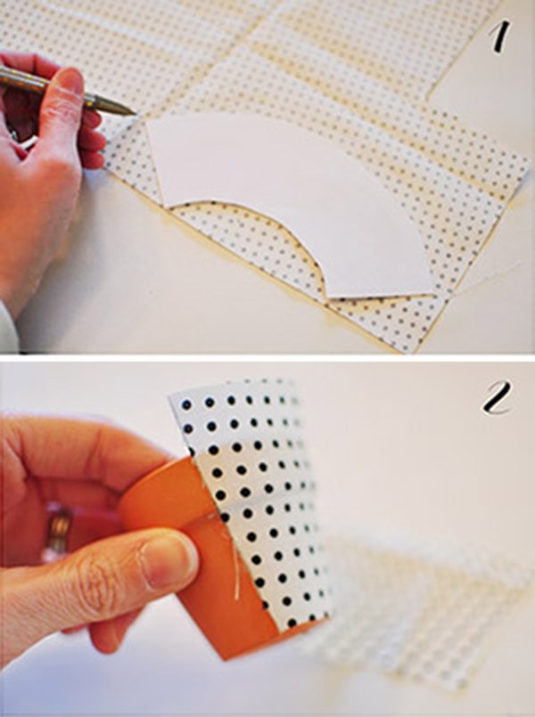 Is this making sense at all? Sure sounds confusing, but you’re basically making a slightly curved template of your pot. Once you hit your original mark, cut out with scissors. This is your template for the fabric.