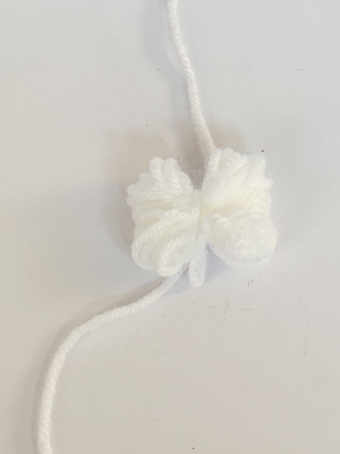 Then, tie a little bit of yarn in the middle of the looped yarn.