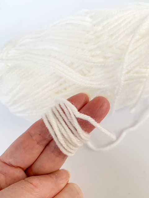 Next, wind the yarn around 2 fingers about 30 times.