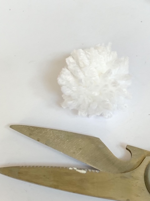 Cut the loops on the ends of the yarn and fluff into a pom pom.