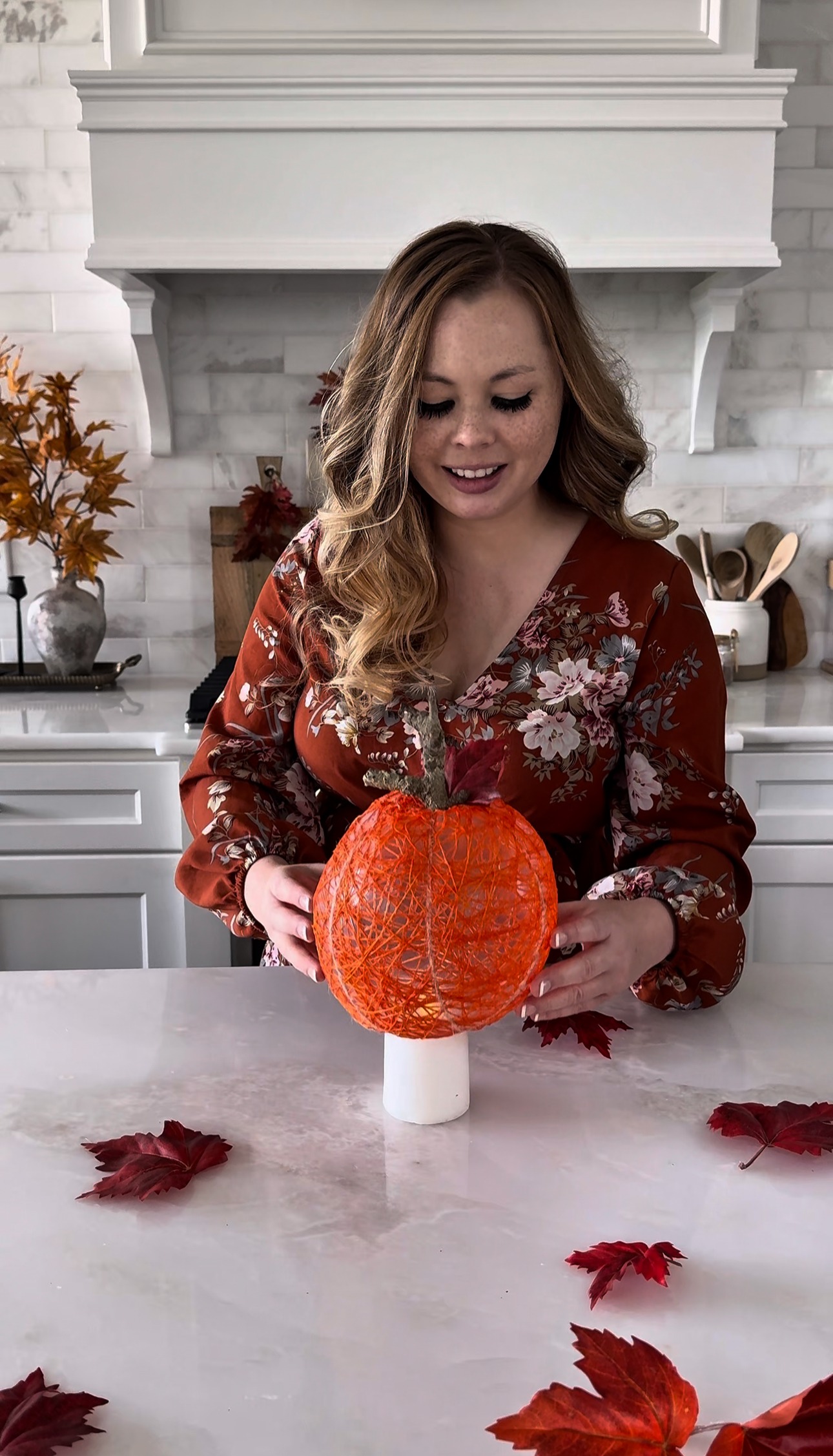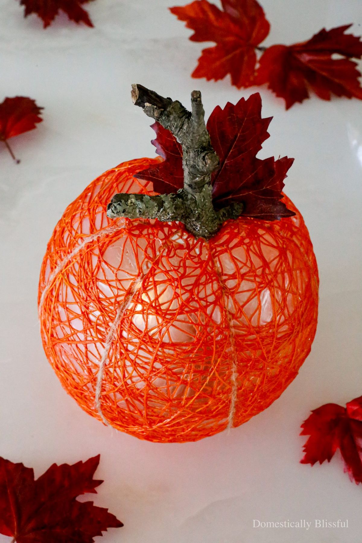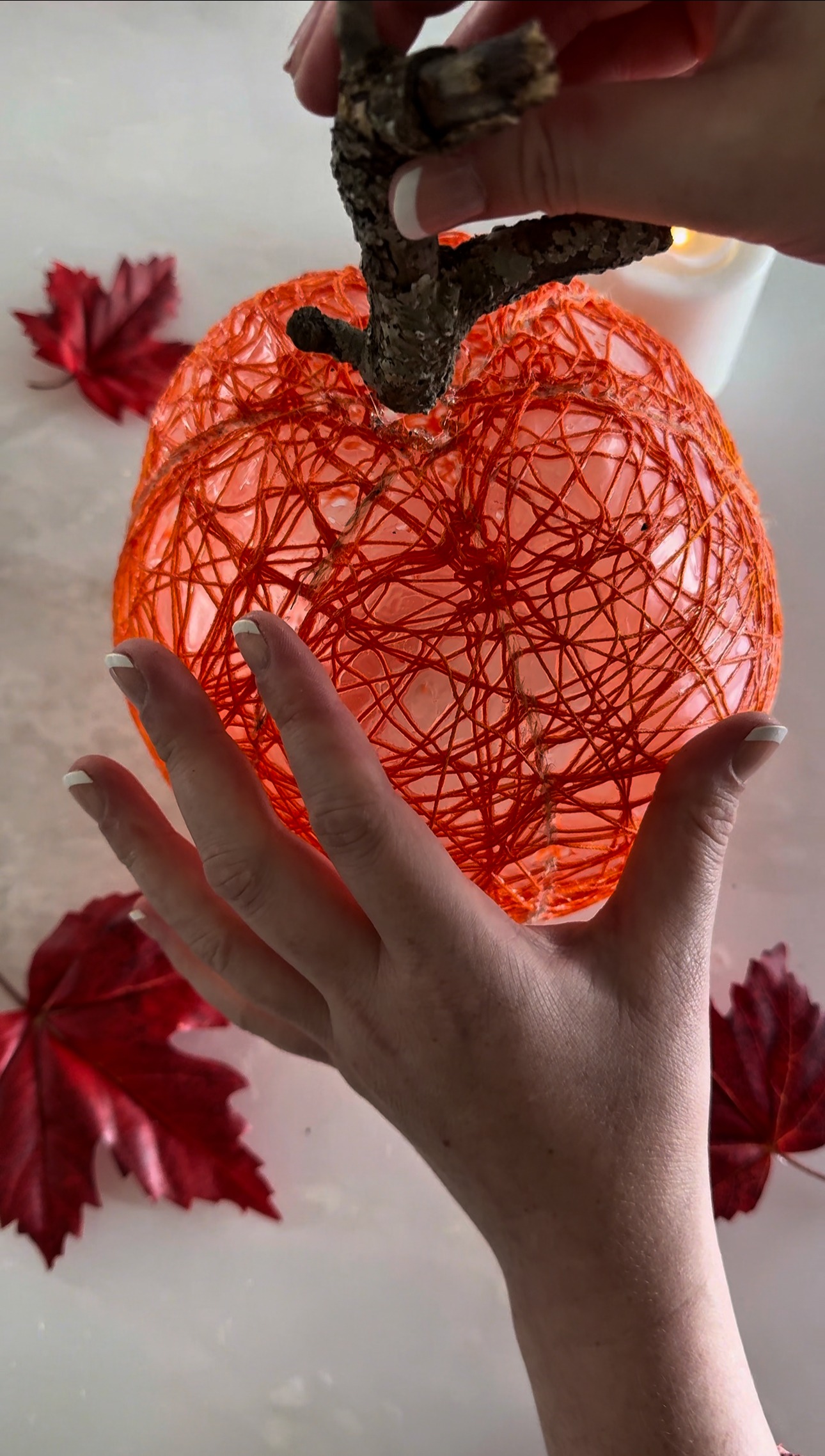 10. Place your DIY String Pumpkin Lantern on top of a flameless candle and enjoy your new fall decor!