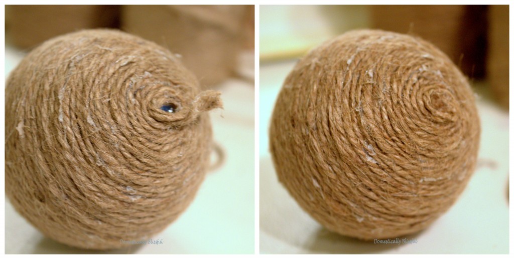 *** If the glue is squeezing up between the twine you are using too much glue – which is always my problem. If this does happen you can easily pull off the glue, once it has dried.