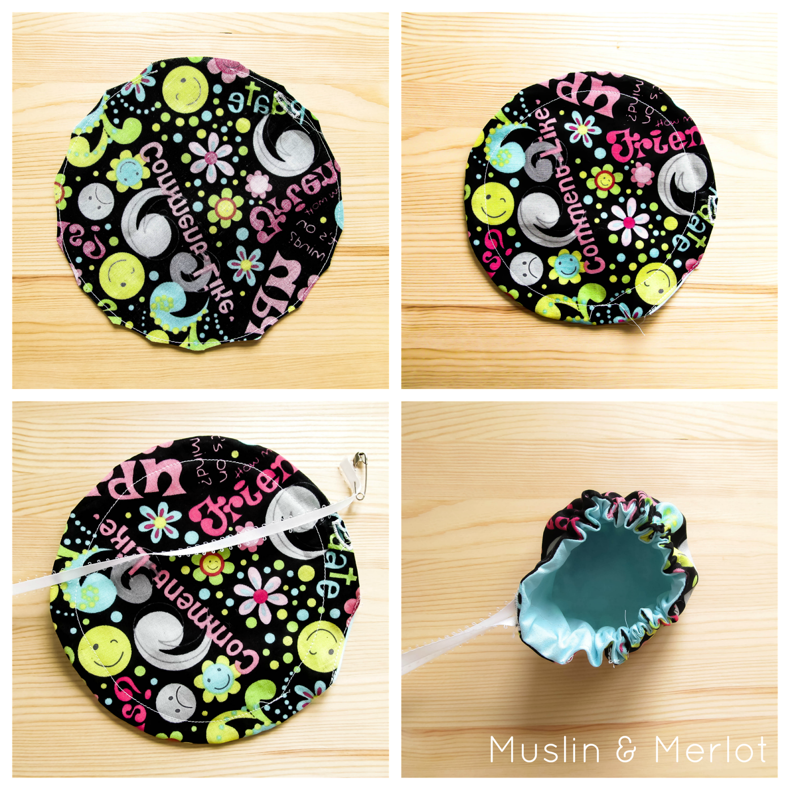 Place the two circles of fabric RIGHT sides together. Sew a 1/4 seam allowance around most of the circle, leave a small area open so that you can turn it inside out.