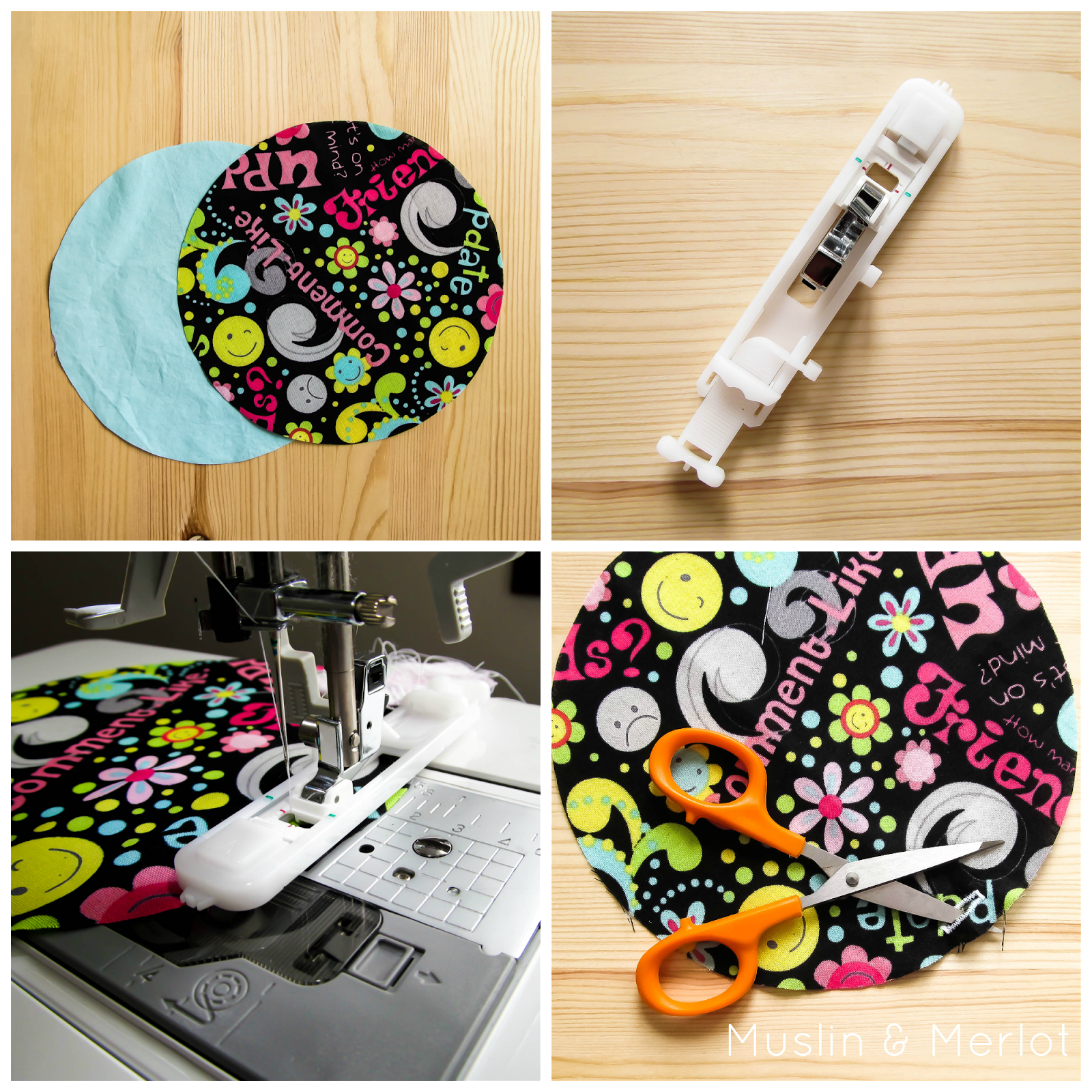 Using the template, trace circles on your fabric. Cut. Separate pieces.