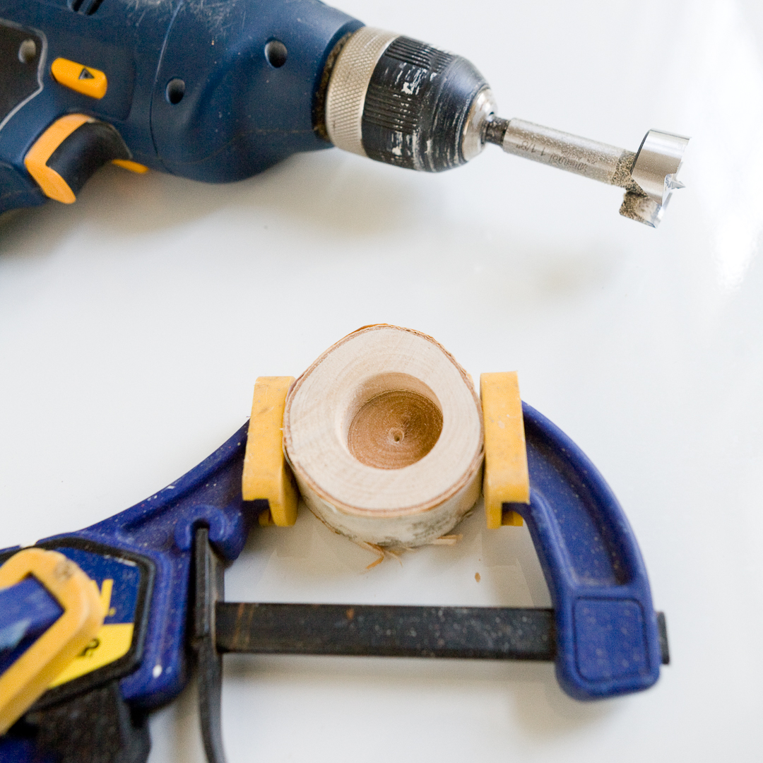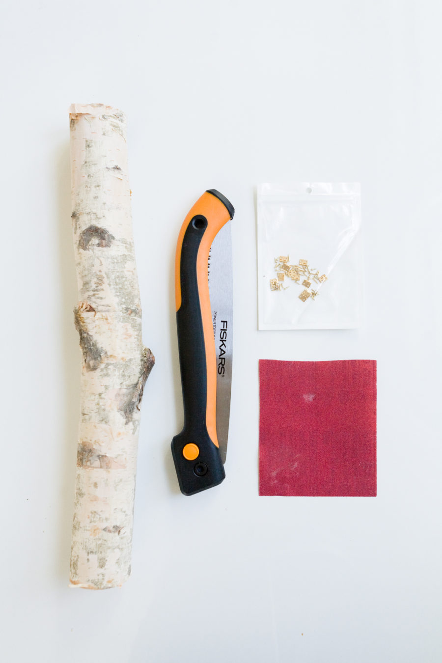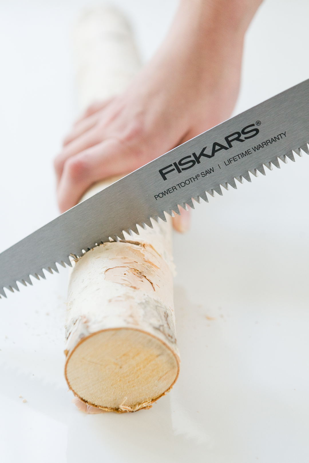 Cut two pieces of birch in 1.5″-2″ lengths each using Fiskars Power Tooth Softgrip Folding Saw.